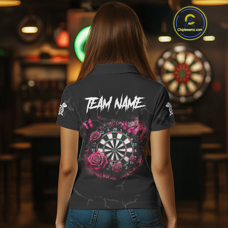 Personalized Pink Funny Skull Roses Darts Shirt For Women Custom Darts Team Jersey, Darts Outfit TDM4354
