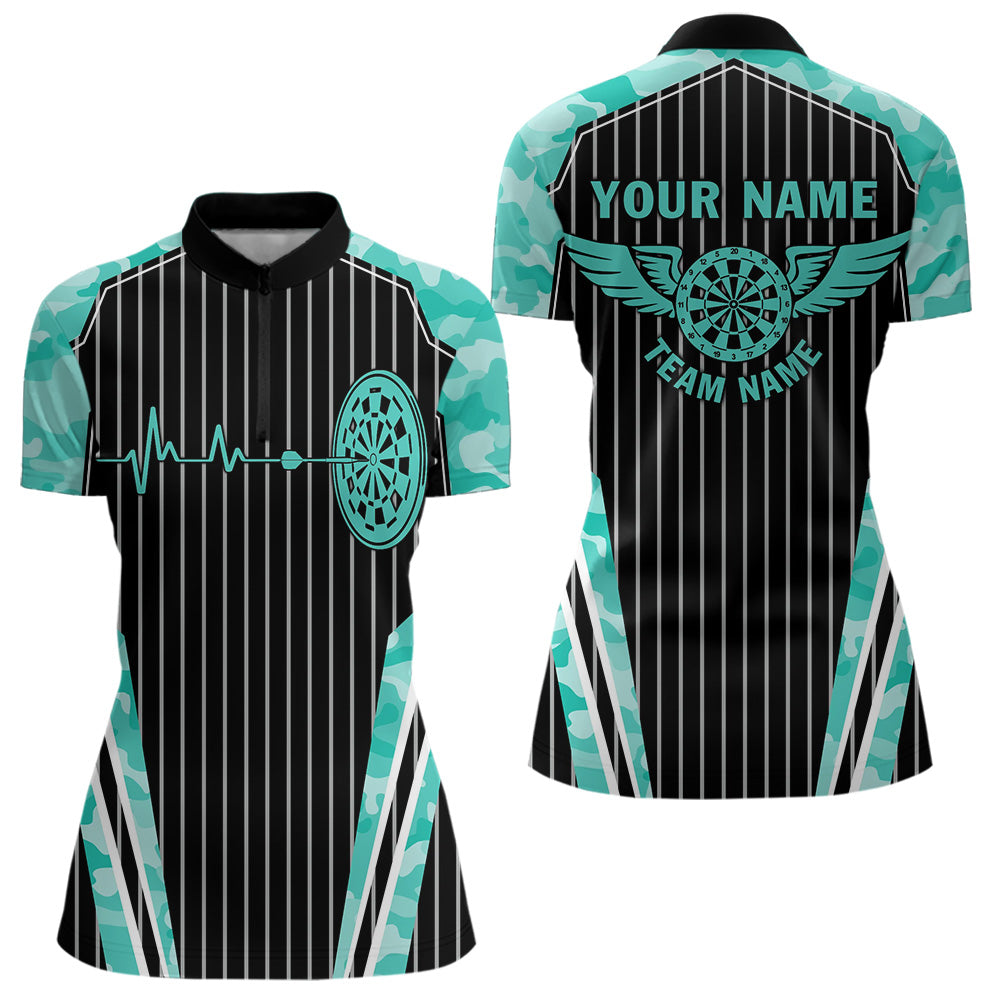 Turquoise Camo Dartboard Pulse Heartbeat Custom Women Dart Shirts, Funny Wings Cool Dart Team Jerseys TDM3618