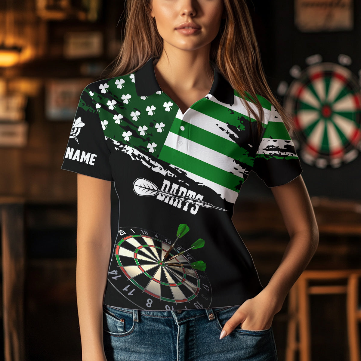 Personalized US Flag St Patrick Day Dart Shirts For Women Custom Patriotic Shamrock Darts Jerseys TDM3643