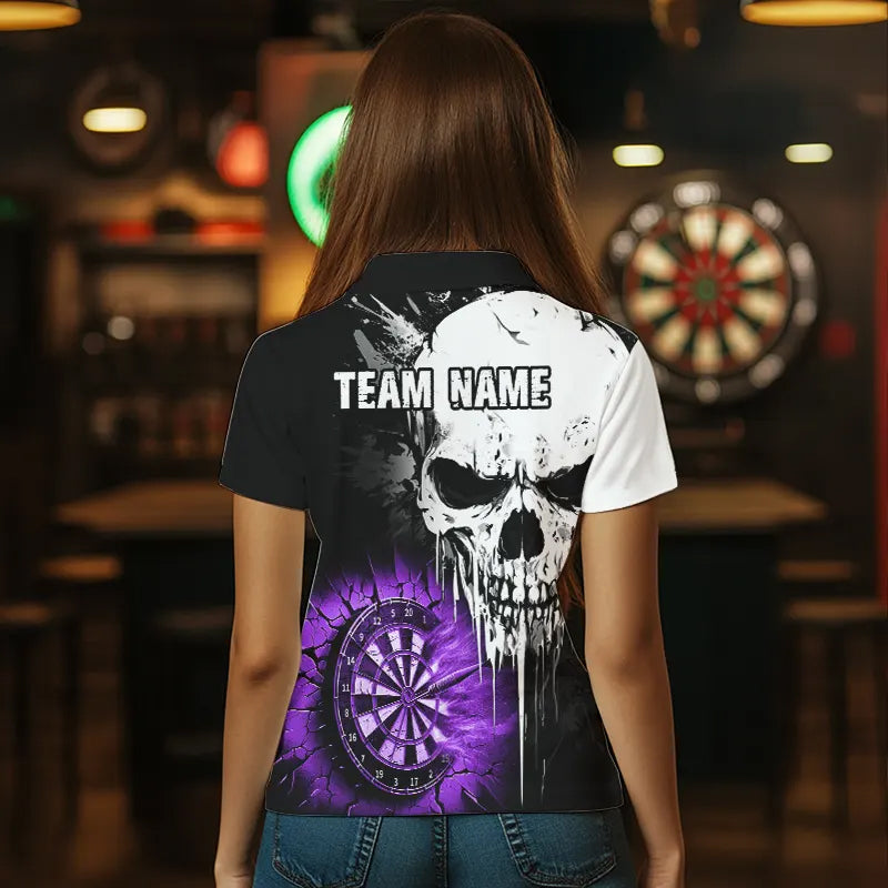 Personalized Grunge Skull Crack Wall Women Dart Shirts Custom Darts League Team Jerseys |Purple TDM3698