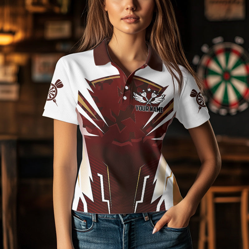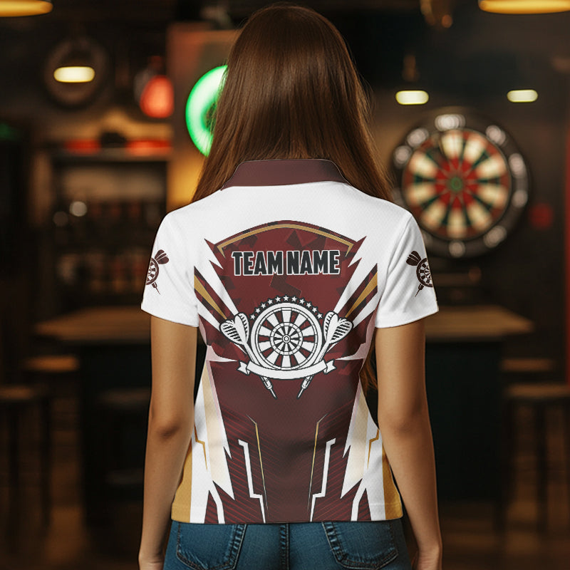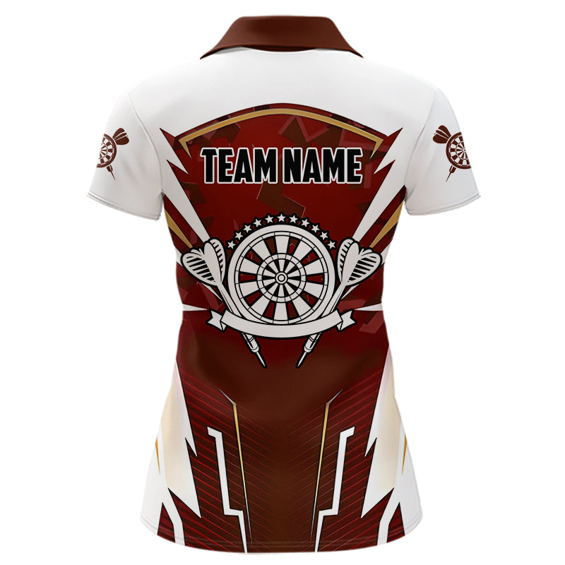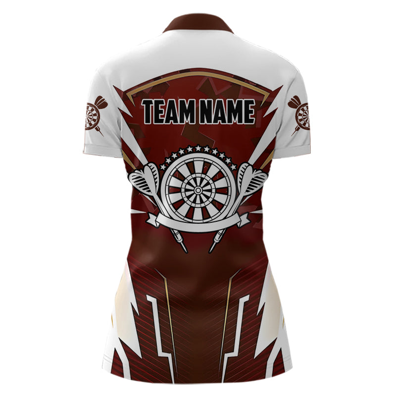 Personalized Wine Red And White Dart Shirts For Women Custom Team Darts Jerseys Polo & Quarter Zip TDM3701