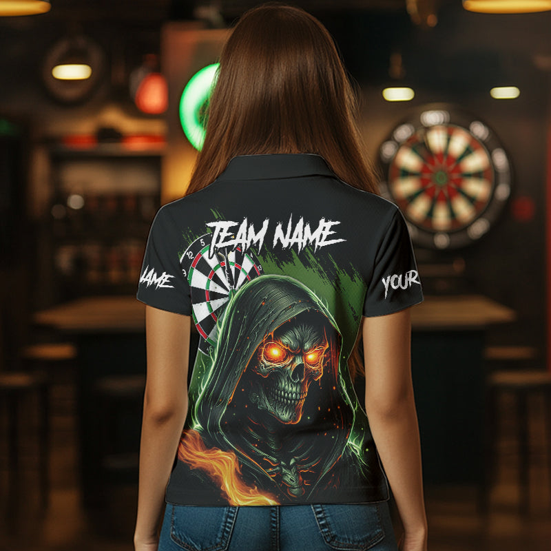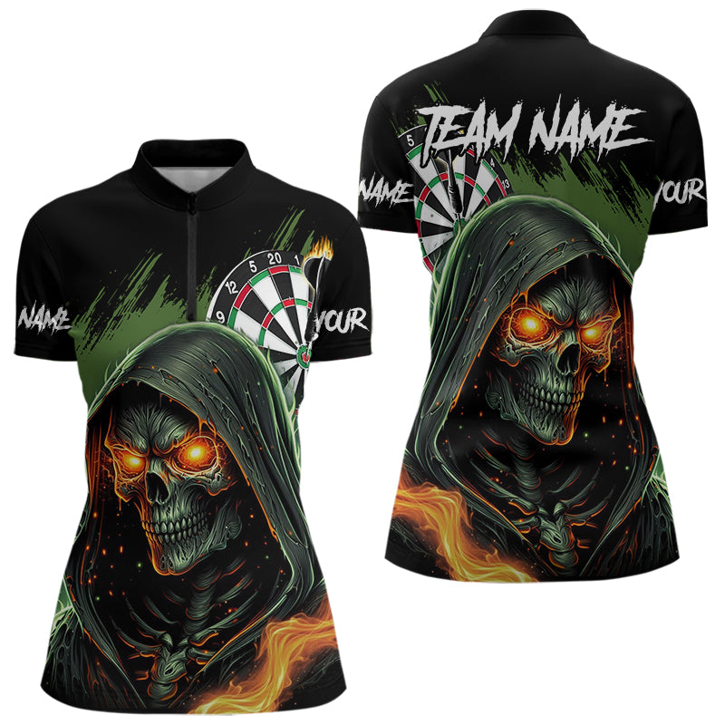 Personalized Green Death Skeleton Fire Dart Shirts For Women Custom Skull Dart Jersey Polo & 1/4 Zip TDM3711