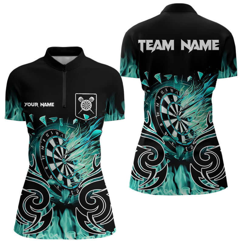 Custom Turquoise Tribal Flame Dart Shirt For Women, Dart Jersey Pocket Option TDM3795