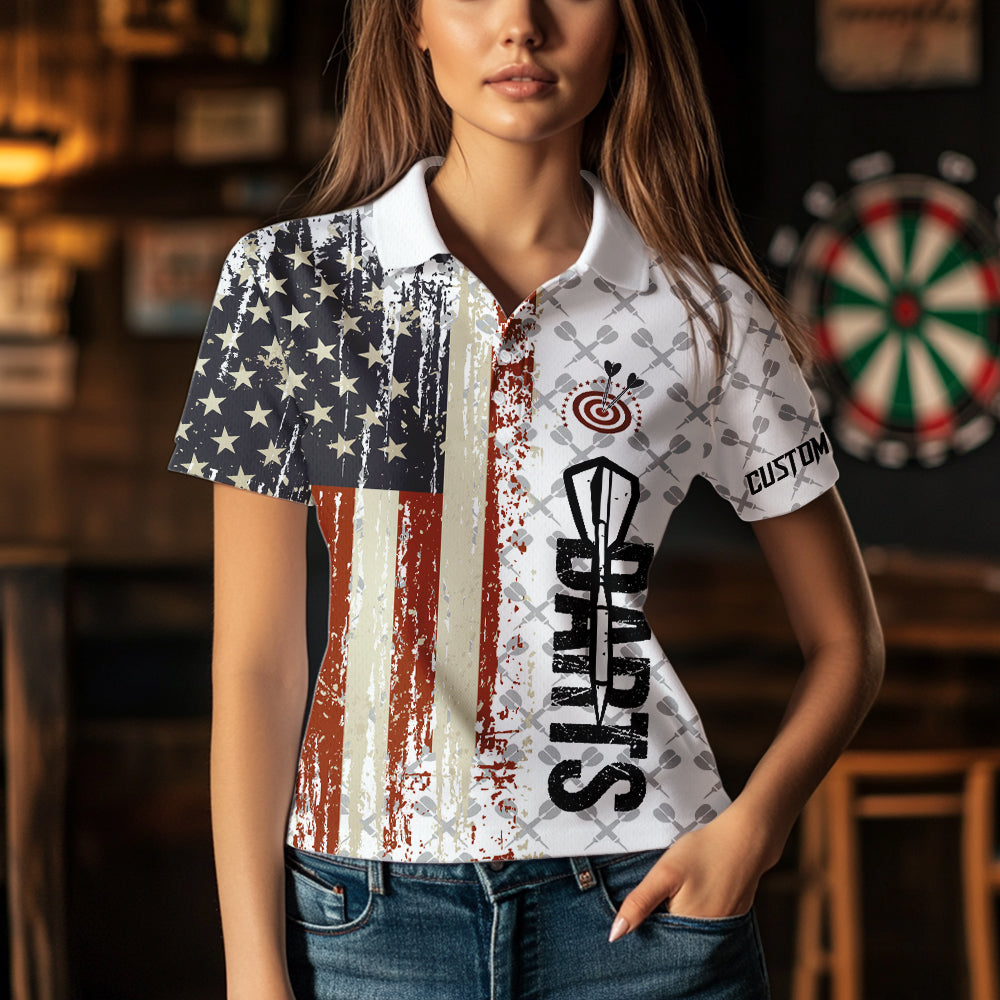 Grunge Retro US Flag Custom Darts Shirt For Women, Darts Jersey Pocket Option TDM3797