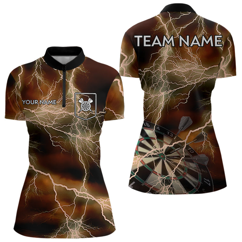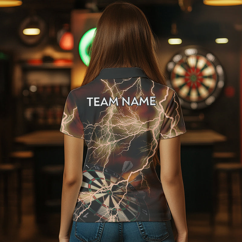 Black And Orange Thunder Lightning Dart Shirt With Pocket For Women Custom Dart Jersey TDM3803