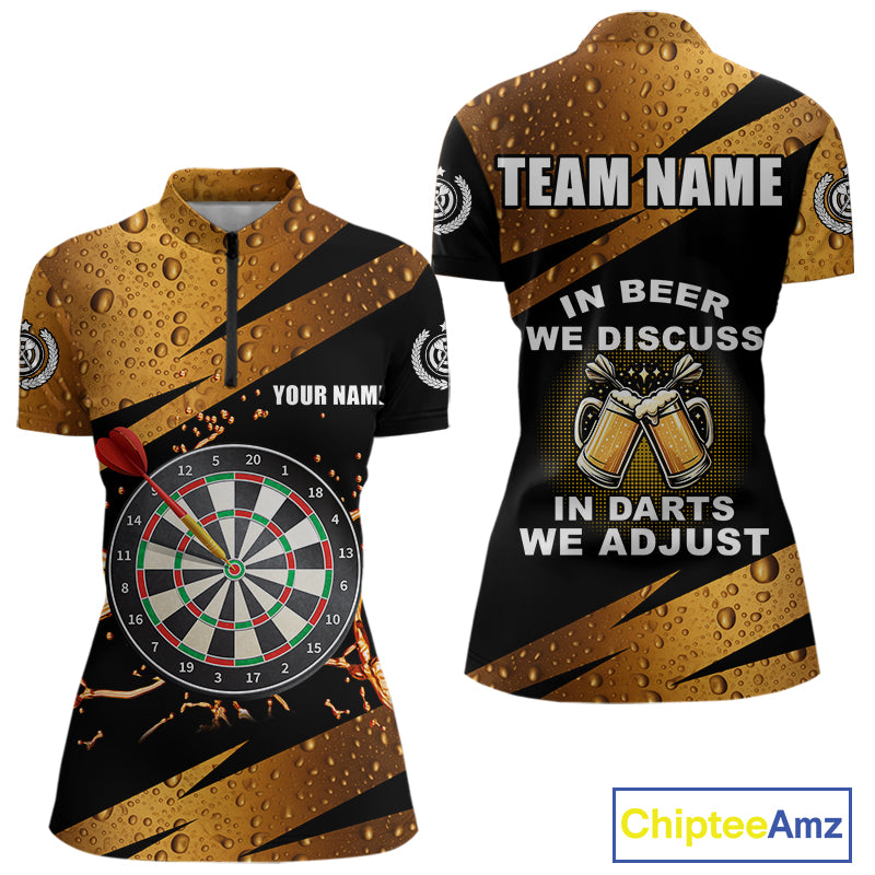 In Beer We Discuss Funny Dart Shirts For Women Custom Beer Dart Jersey Team Polo & Quarter Zip TDM3845
