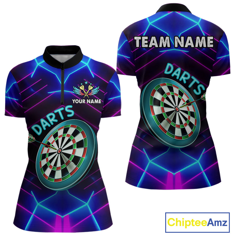 Neon Purple Blue Dart Shirts For Women Custom Glowing Dart Jersey Team Outfit Polo & Quarter Zip TDM3846
