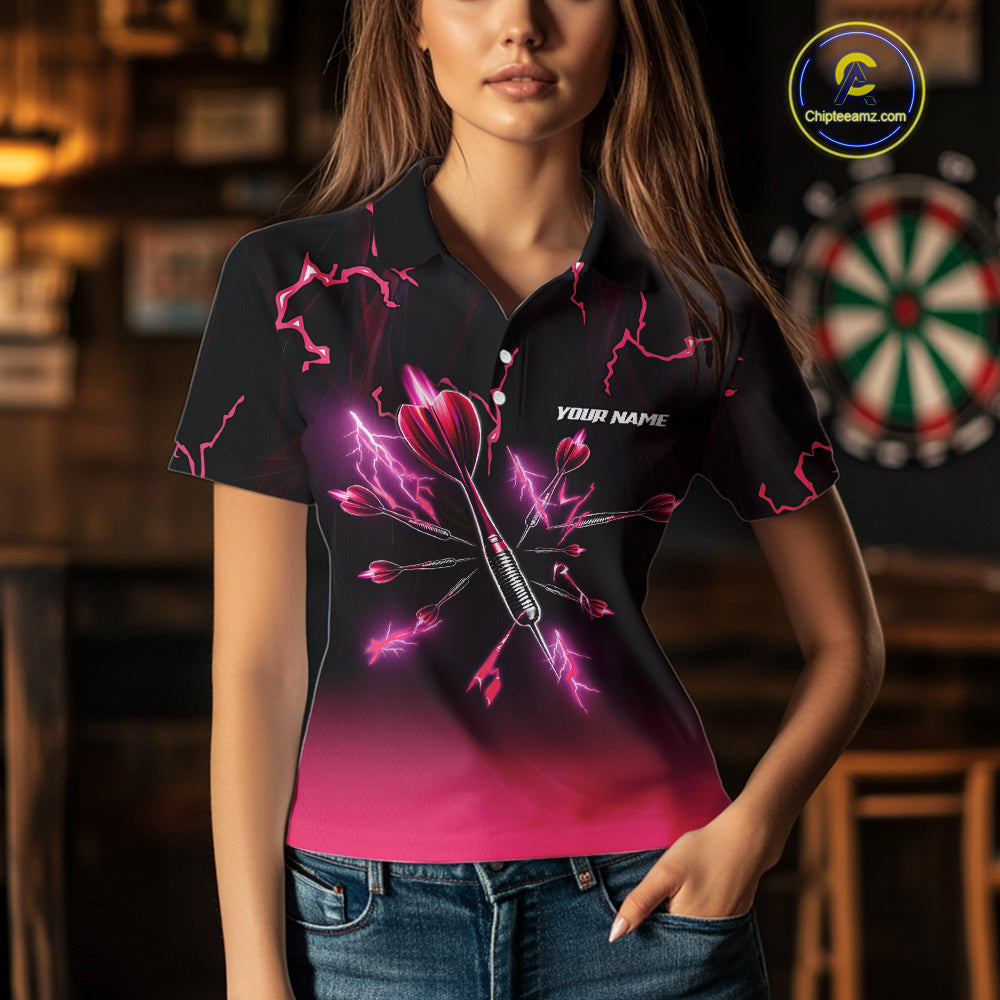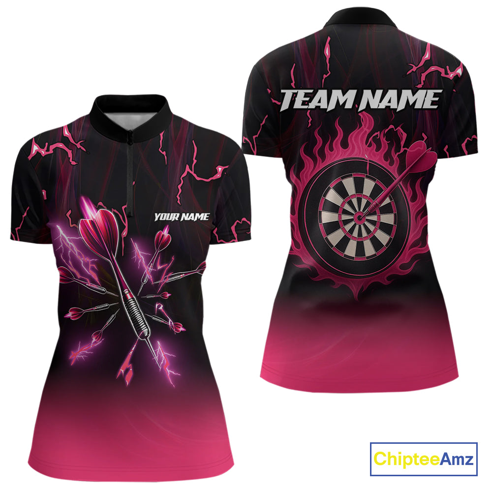Pink And Black Lightning Arrow Custom Dart Shirts For Women| Darts Team Jersey – Polo & Quarter Zip TDM3965