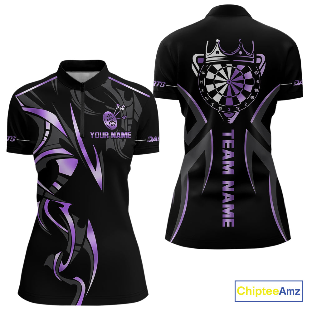 Black And Purple Dartboard Crown Dart Shirts For Women Custom Dart Jersey Team Polo & Quarter Zip TDM4092