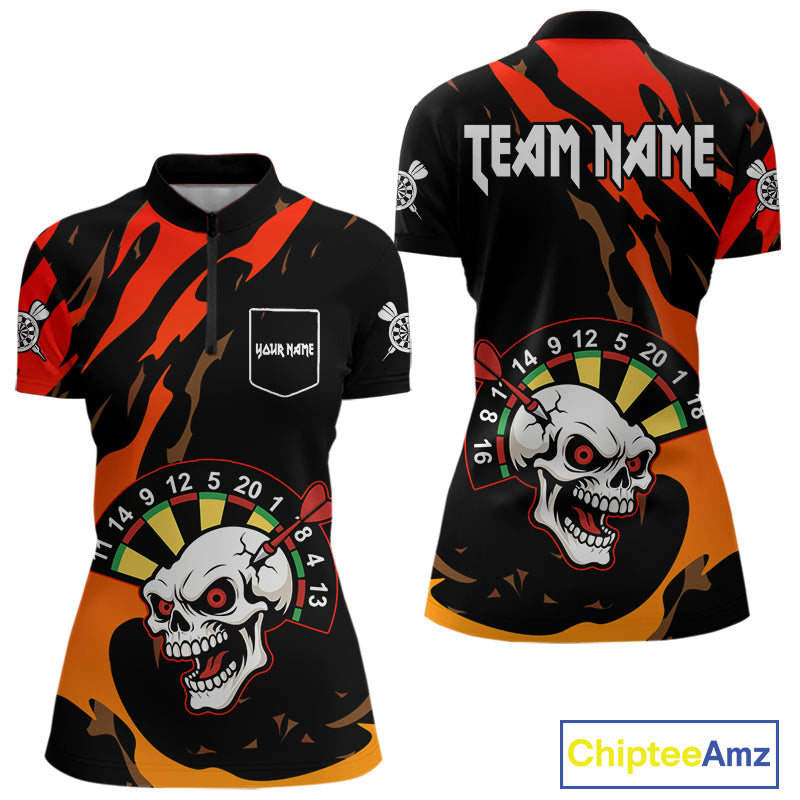 Funny Skull Dart Shirts With Pocket Option For Women Custom Dart Team Jersey TDM4098