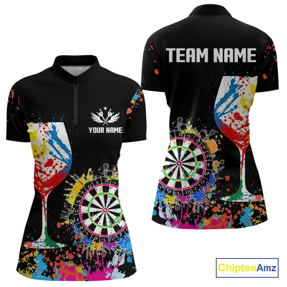 Personalized Colorful Splash Dart Shirts For Women, Funny Wine Glass Custom Darts Jersey Outfit TDM4099