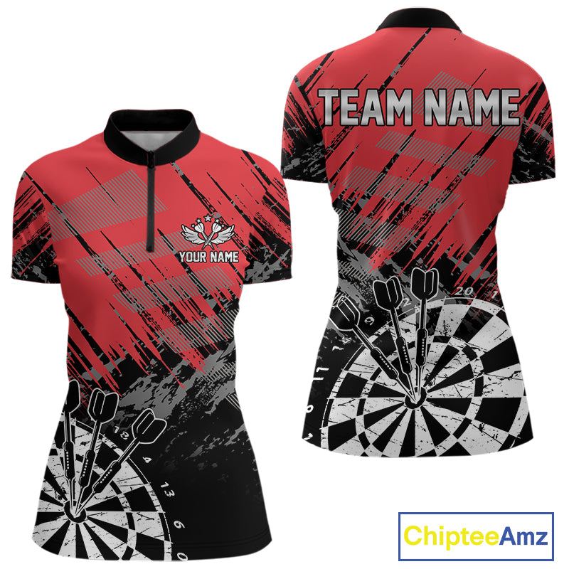Red Black Grunge Darts Shirts For Women Custom Dart Jersey With Pocket Option TDM4107