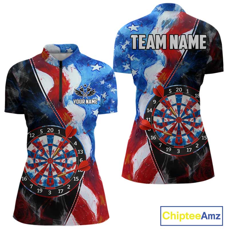 Personalized Watercolor American Flag Dart Shirts For Women Custom Patriotic Darts Team Jerseys TDM4192