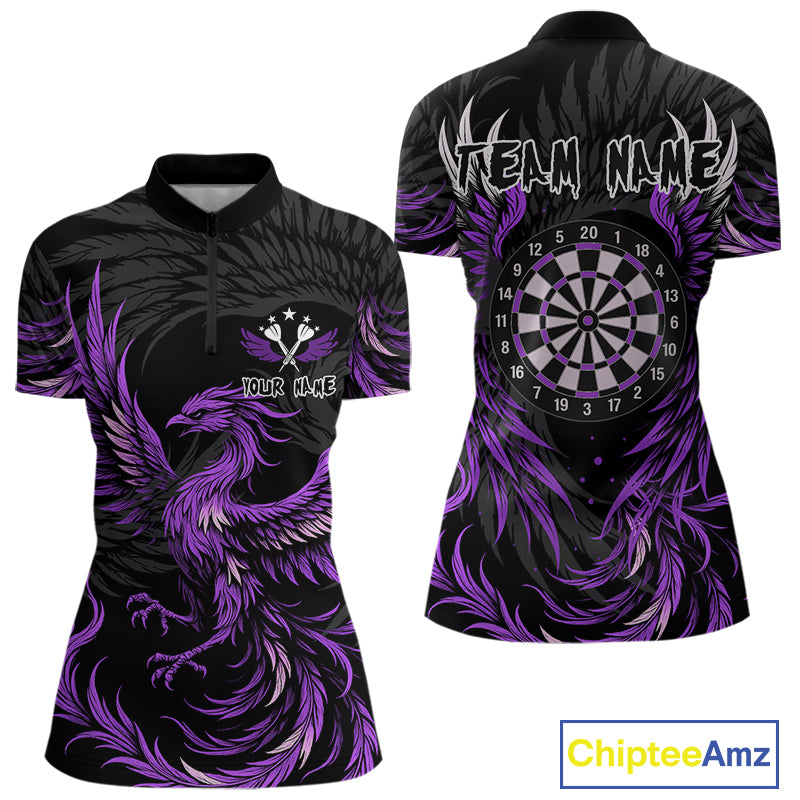 Personalized Phoenix Dartboard Wings Women's Dart Shirts Custom Black And Purple Darts Team Jerseys TDM4272