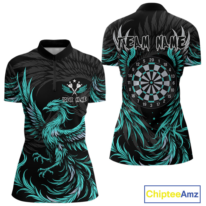 Personalized Phoenix Dartboard Wings Women's Dart Shirts Custom Black & Turquoise Darts Team Jerseys TDM4273