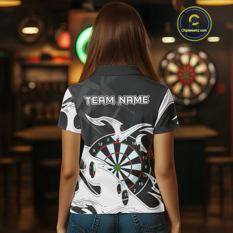 Custom Black And White Tribal Flame Dart Shirts For Women, Darts Team Jerseys Polo & Quarter Zip TDM4286