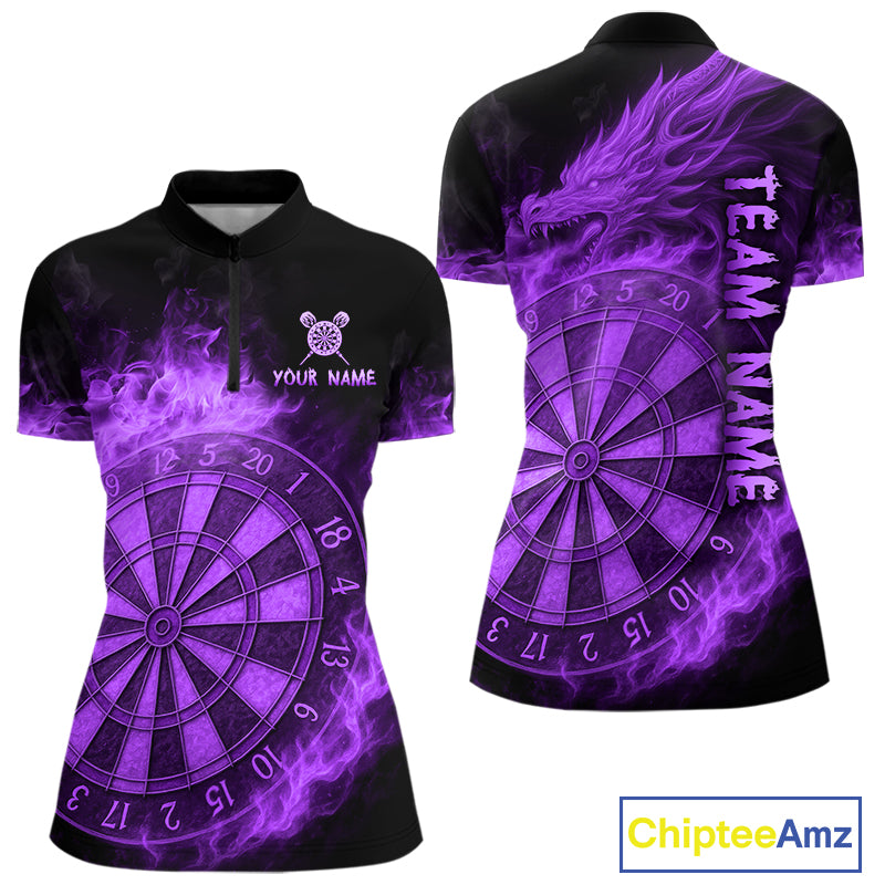 Personalized 3D Purple Dartboard Dragon Flame Dart Shirts For Women Custom Darts Team Jerseys TDM4312