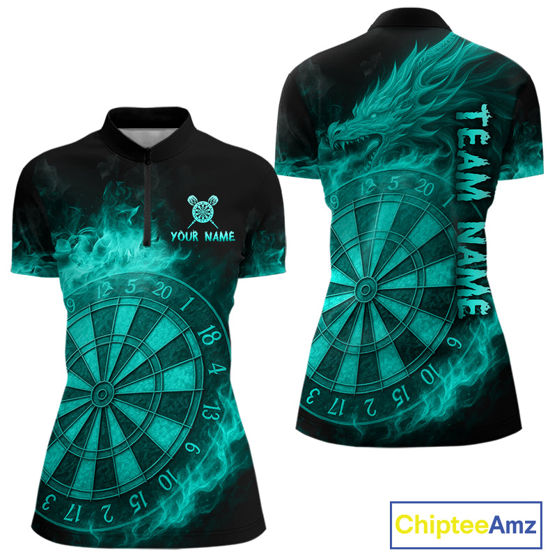 Personalized 3D Turquoise Dartboard Dragon Flame Dart Shirts For Women Custom Darts Team Jerseys TDM4313