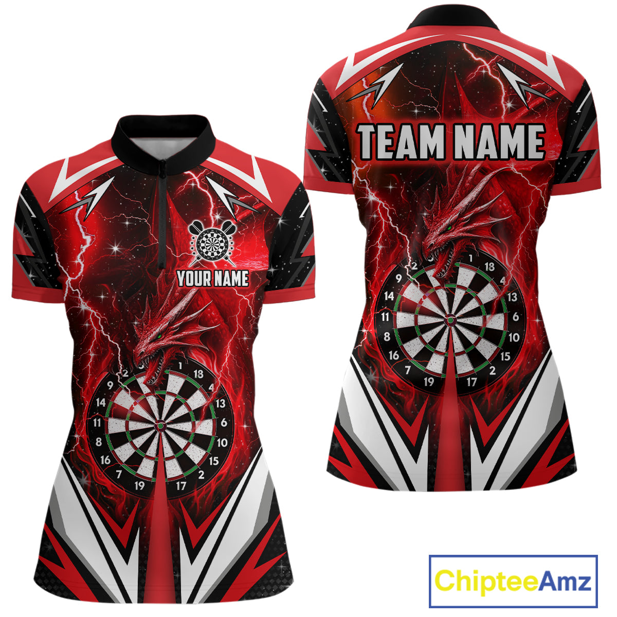 Red Darts Jerseys Custom Thunder Lightning Dragon Dart Shirt Team Polo & Quarter Zip For Women TDM4315