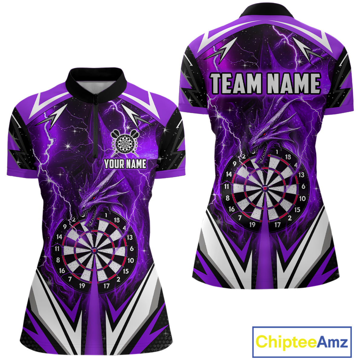 Purple Darts Jerseys Custom Thunder Lightning Dragon Dart Shirt Team Polo & Quarter Zip For Women TDM4316