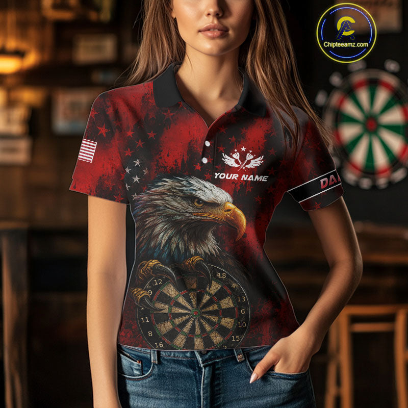 Black And Red American Flag Claw Eagle Darts Shirt For Women Custom Team Patriotic Darts Jerseys TDM4318