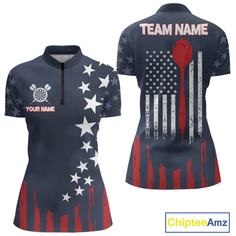 Personalized American Flag Navy Blue Darts Shirt For Women Custom Patriotic Darts Team Jerseys TDM4343