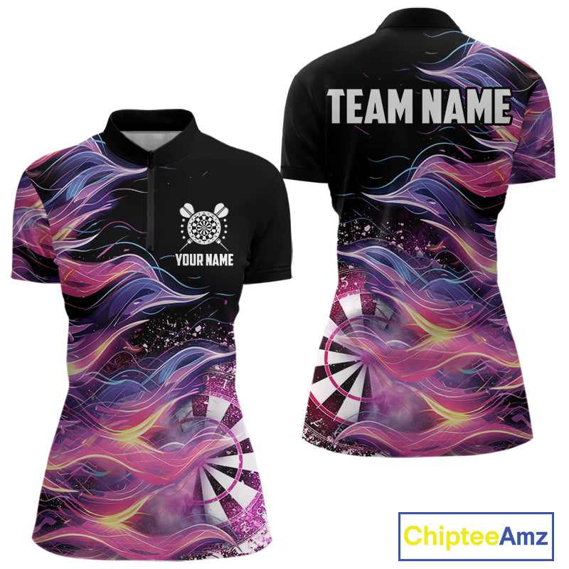 Funny Pink Flame Dart Shirt With Pocket Option For Women Custom Darts Jersey TDM4353