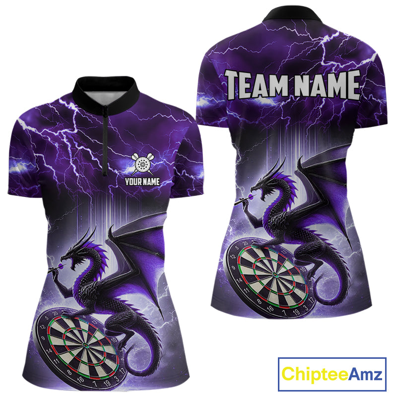 Custom Purple Thunder Lightning Dragon Darts Shirt For Women, Darts League Jersey Polo & 1/4 Zip TDM4385