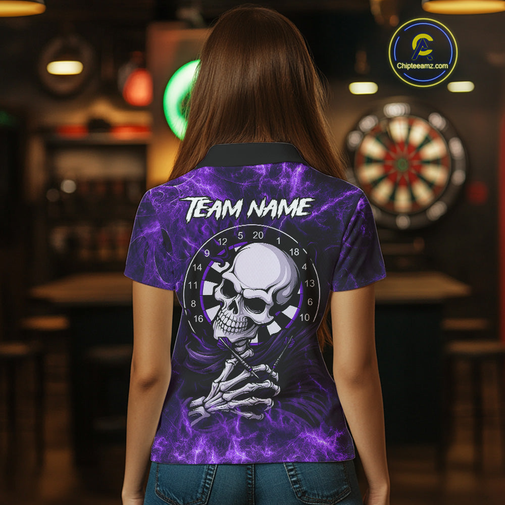 Personalized Purple Funny Skeleton Darts Shirt For Women Custom Skull Darts League Team Jersey TDM4398