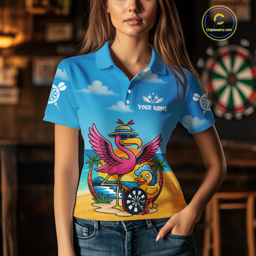 Personalized Funny Tropical Flamingo Darts Shirt For Women Custom Darts Jersey Outfit, Darts Gifts TDM4408