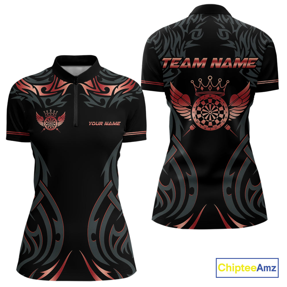 Black And Red Dartboard Crown Wings Custom Darts Shirt For Women, Darts Team Jerseys Polo & 1/4 Zip TDM4421