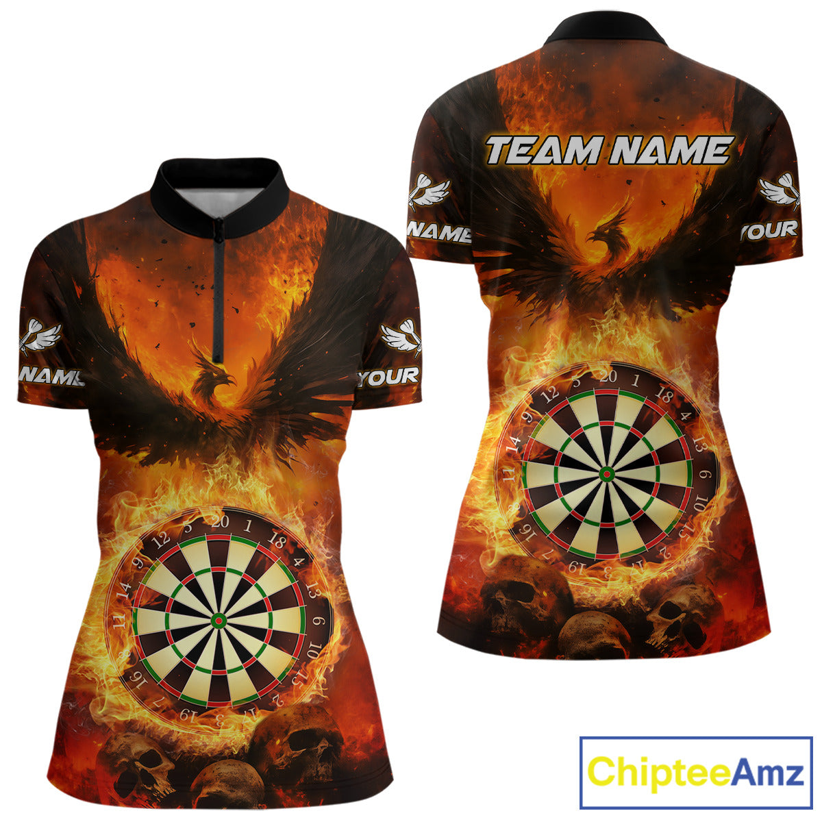 Personalized Orange Flaming Phoenix Darts Shirt For Women, Darts League Jersey Team Polo & 1/4 Zip TDM4490
