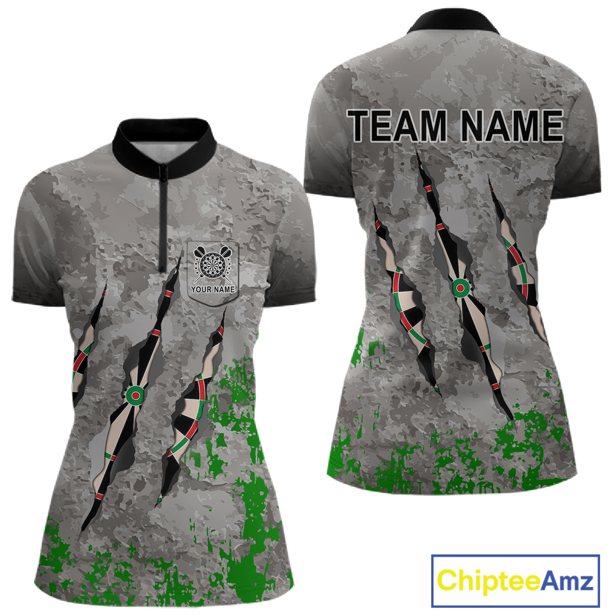 Custom Green Grey Grunge Dart Shirt With Pocket Option For Women, Darts Jersey TDM4528