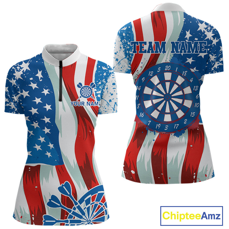 American Flag Dartboard Paint Patriotic Darts Shirt For Women Custom Darts Jerseys Polo & 1/4 Zip TDM4607