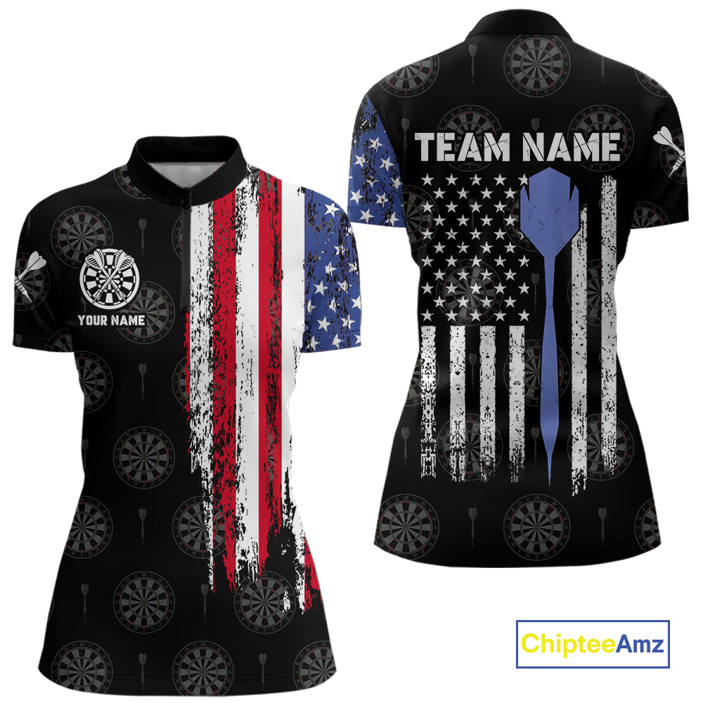 Personalized Grunge American Flag Dart Polo & Quarter Zip For Women Custom Patriotic Darts Jerseys TDM4618
