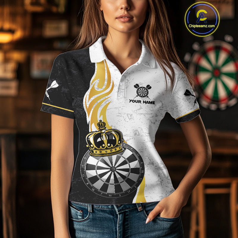 Personalized Dartboard Crown Gold Darts Shirt For Women Custom Darts Team Jersey Polo & 1/4 Zip TDM4653