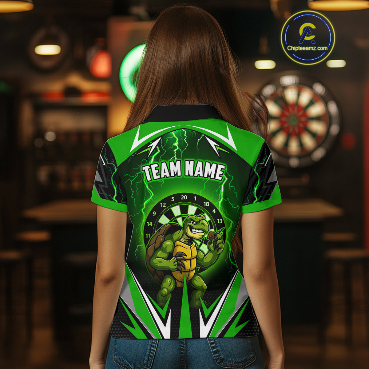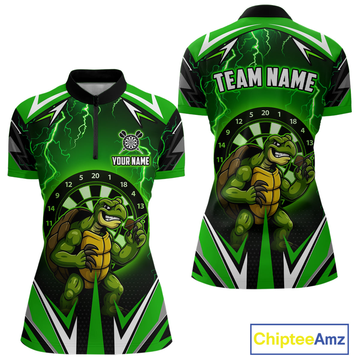 Personalized Funny Turtle Darts Shirt For Women Custom Thunder Lightning Green Darts Team Jerseys TDM4664