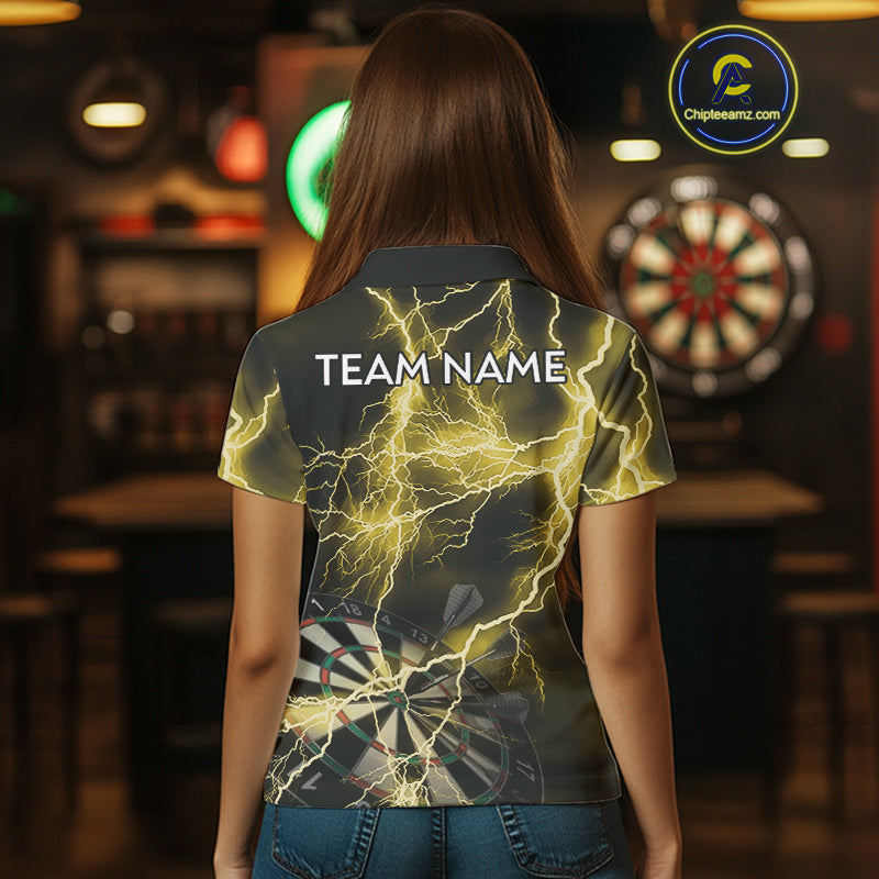 Thunder Lightning Yellow Darts Shirt With Pocket For Women Custom Dart Jersey TDM4695