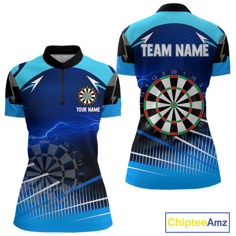 Personalized Blue Thunder Lightning Darts Jersey For Women Custom Darts Team Shirt Polo & 1/4 Zip TDM4721