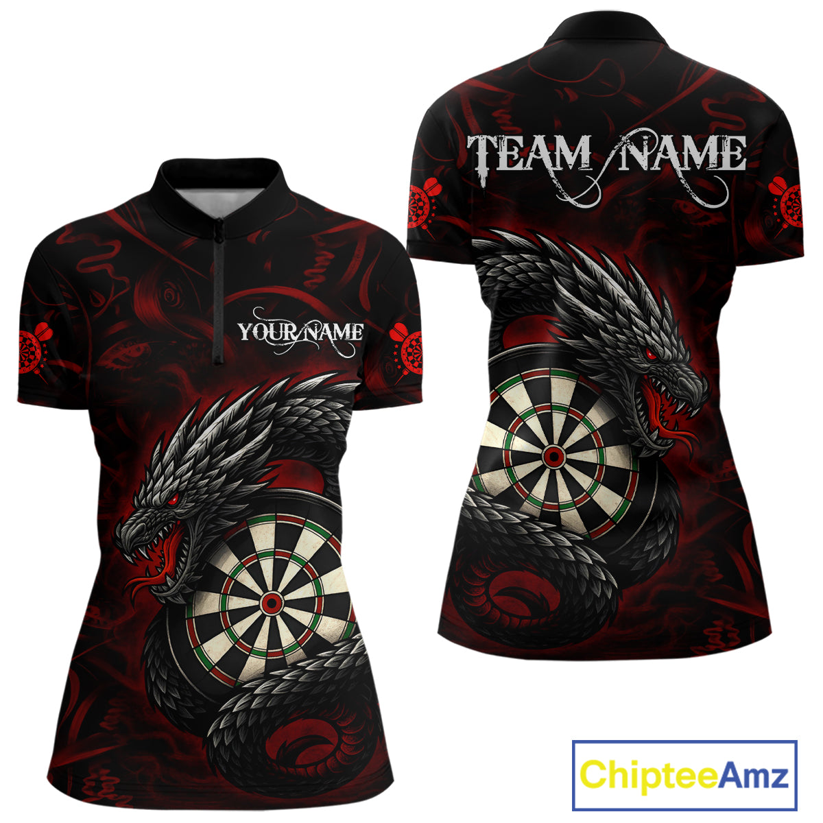 Black And Red Dragon Darts Shirt For Women Custom Darts League Team Jersey Polo & Quarter Zip TDM4723