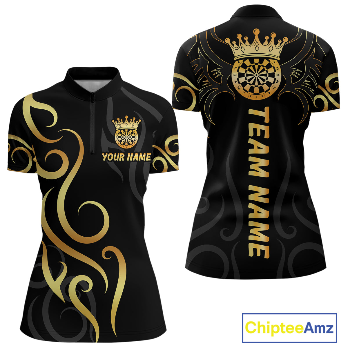 Black And Glowing Gold Dartboard Crown Tribal Darts Shirt For Women Custom Darts Team Jersey TDM4727
