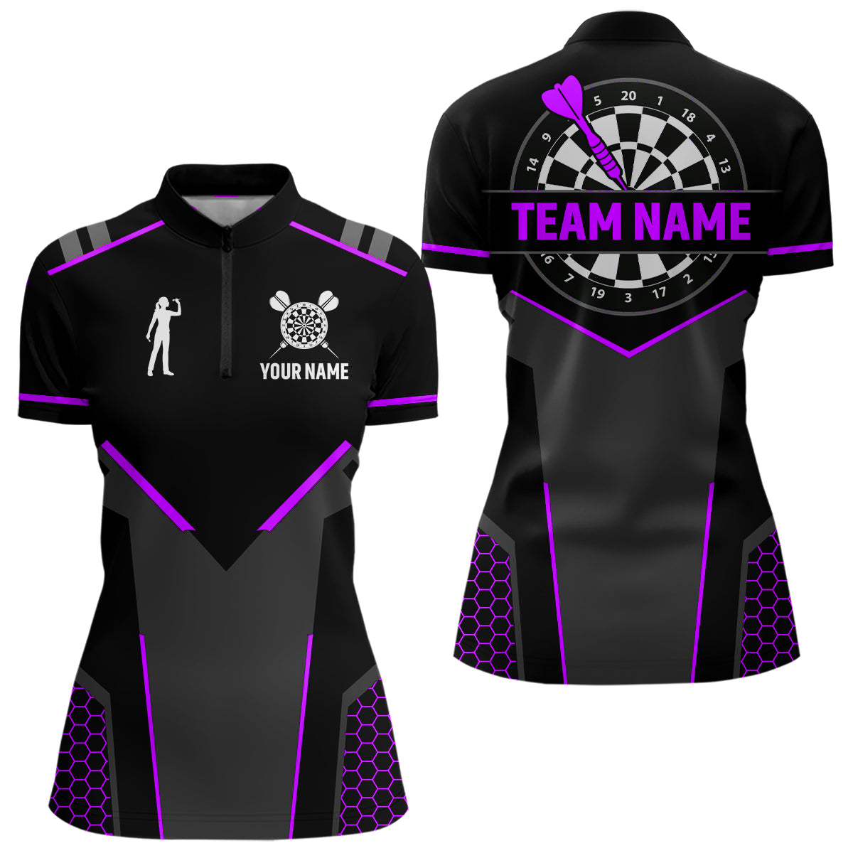 Darts Jersey For Women Custom Polo & Quarter Zip Darts Tournament Team Shirt  |Purple TDM4748