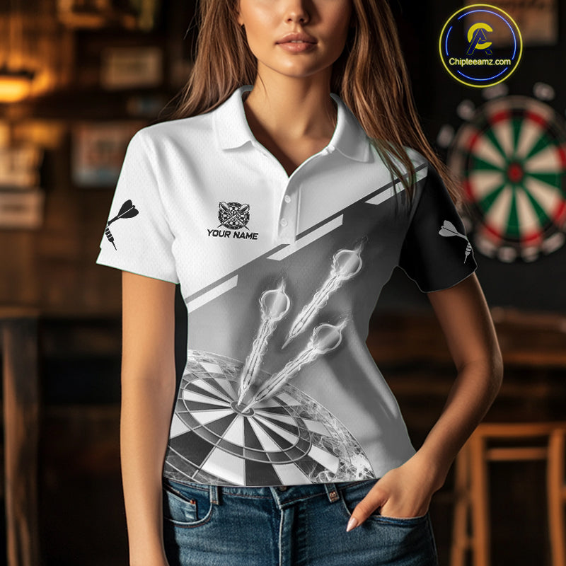 Personalized White And Grey Dart Jersey Polo & 1/4 Zip For Women Custom Dart Shirts Team Uniform TDM4754