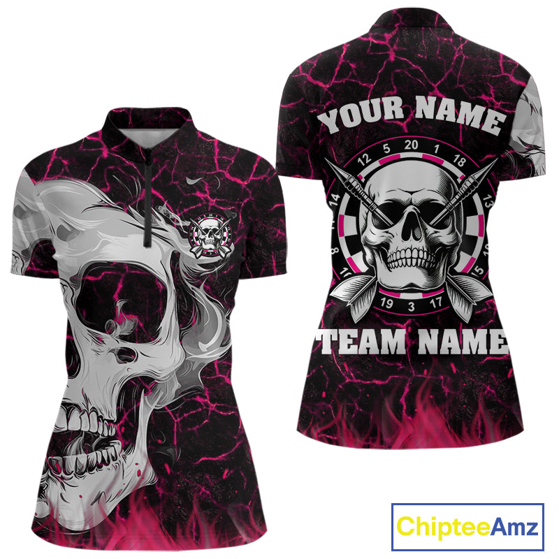 Personalized Pink 3D Fire Crack Skull Dart Shirts Custom Scary Dart Shirts For Women Dart Jersey TDM4762