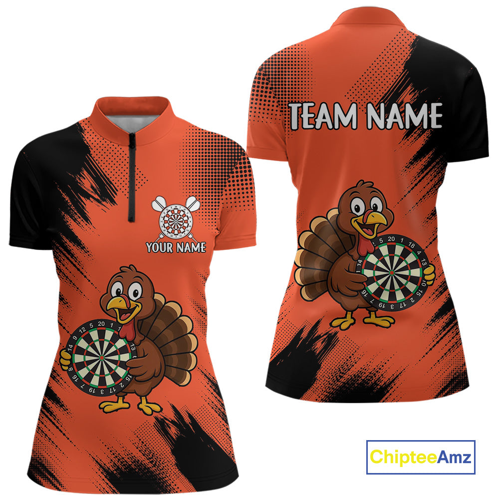 Custom Orange Funny Turkey Darts Shirt For Women, Thanksgiving Darts Team Jersey Polo & 1/4 Zip TDM4803