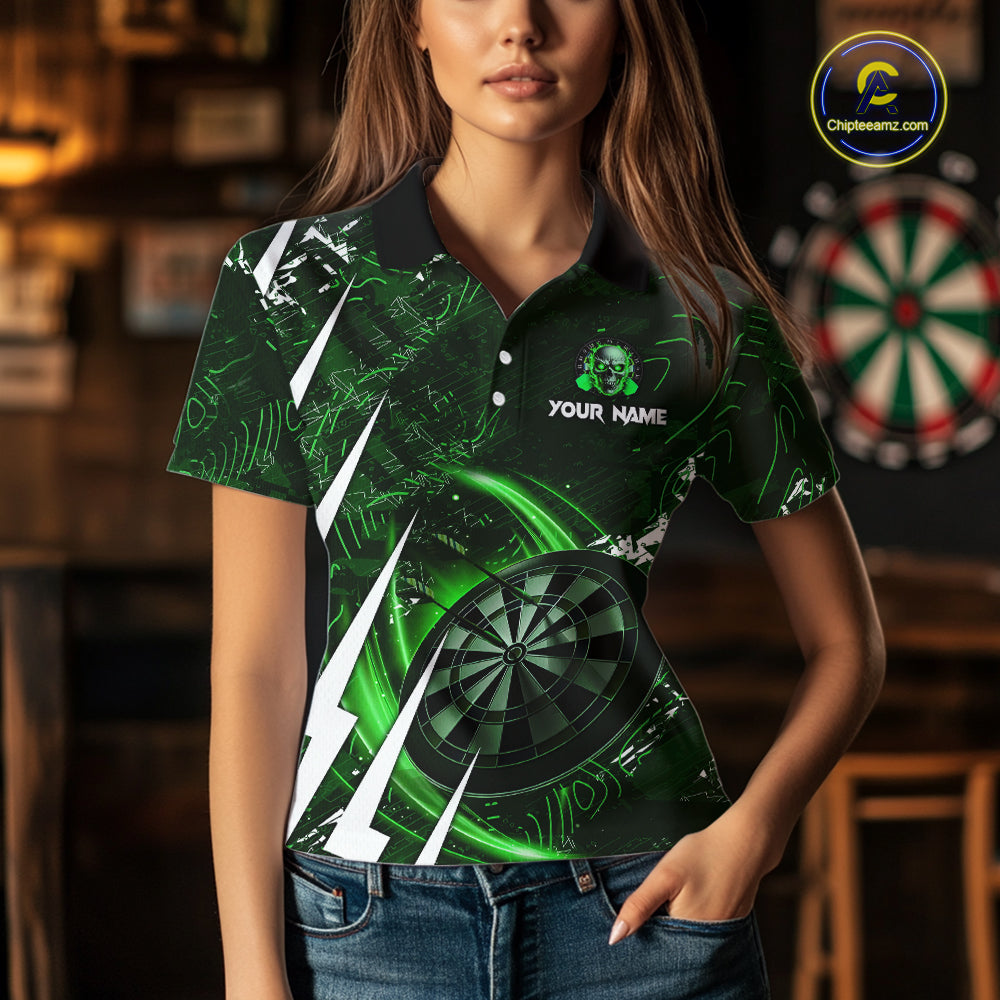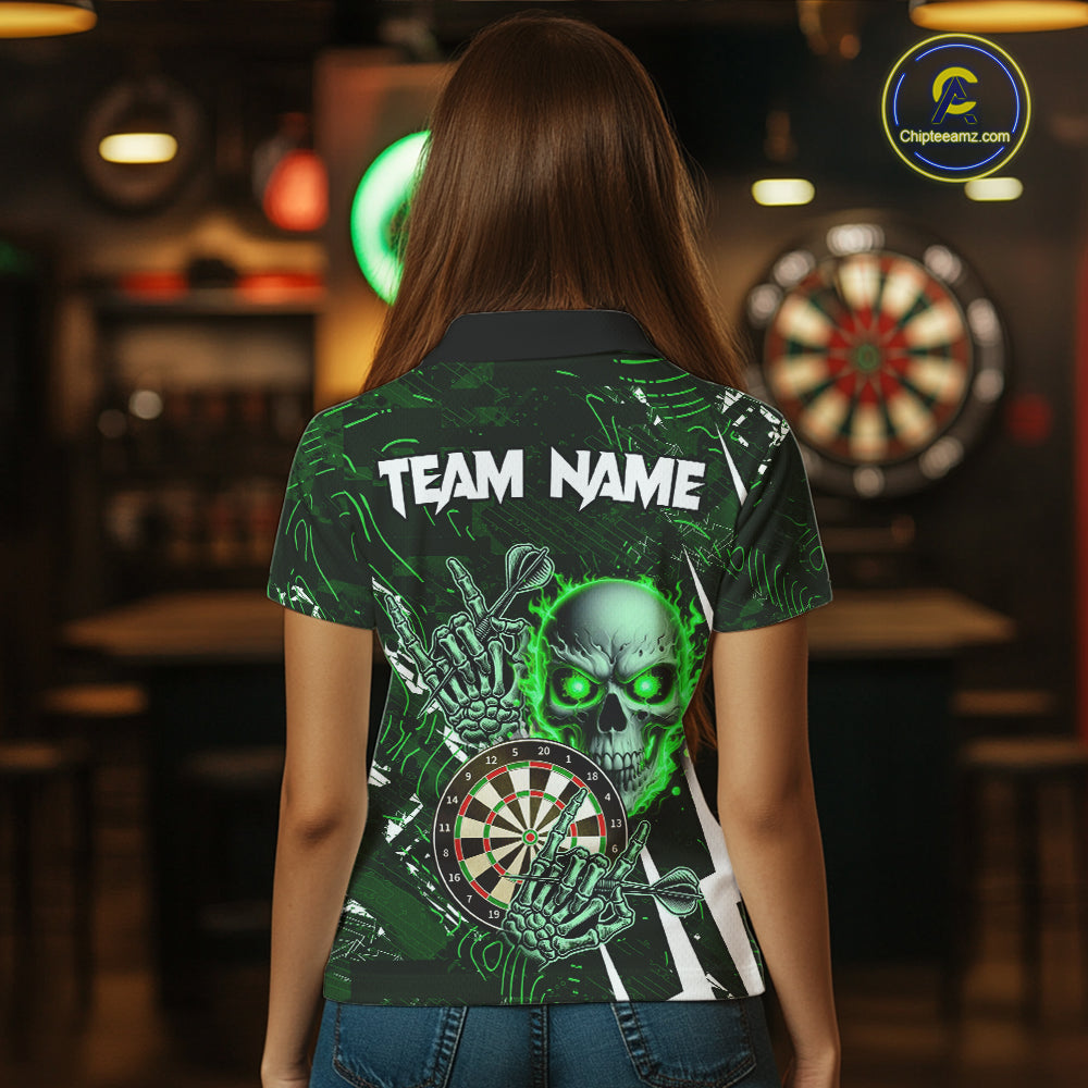 Green 3D Skull Darts Polo & 1/4 Zip For Women Custom Darts League Team Jersey, Best Darts Gifts TDM4829