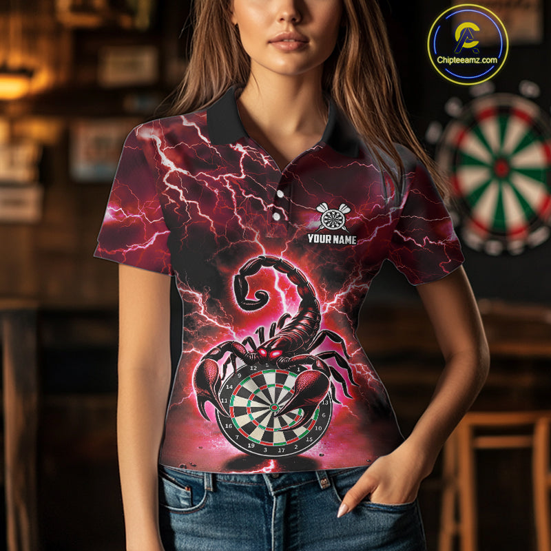 Red Lightning Thunder Scorpion Darts Shirt Polo & 1/4 Zip For Women Custom Darts League Team Jersey TDM4866