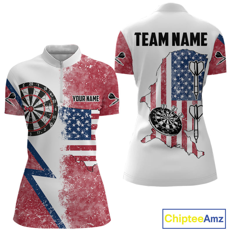 Personalized Grunge American Flag Women's Dart Shirts Custom Patriotic Darts Team Jersey |White TDM4906