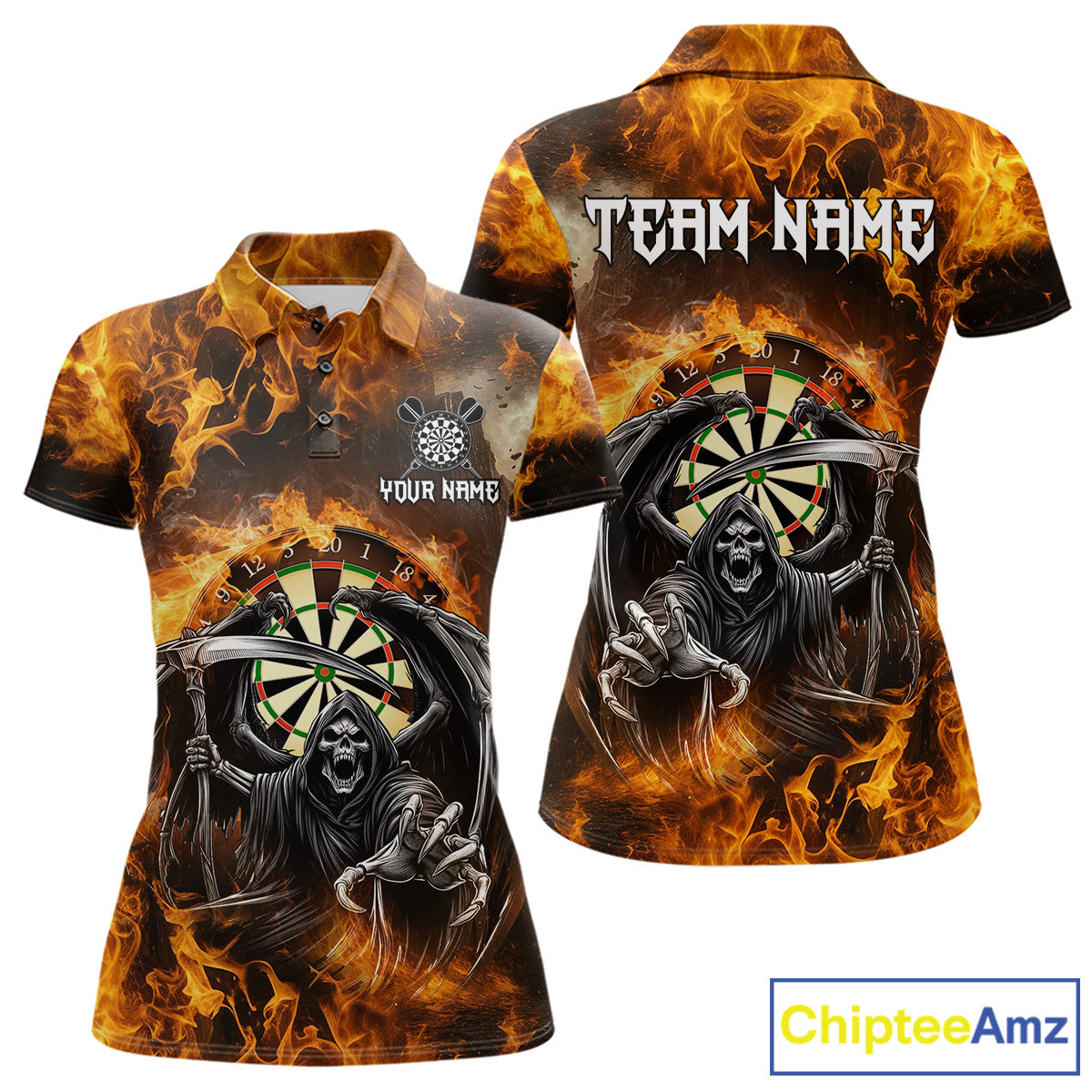 Personalized Orange Flaming Grim Reaper Darts Shirt For Women Custom Fire Darts Team Jersey TDM4974