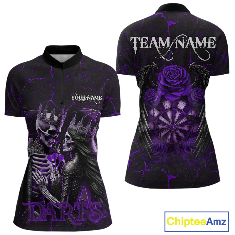 Personalized Skeleton Couple And Roses Gothic Darts Shirt For Women, Darts Jersey Outfit | Purple TDM5040